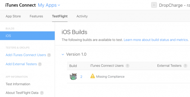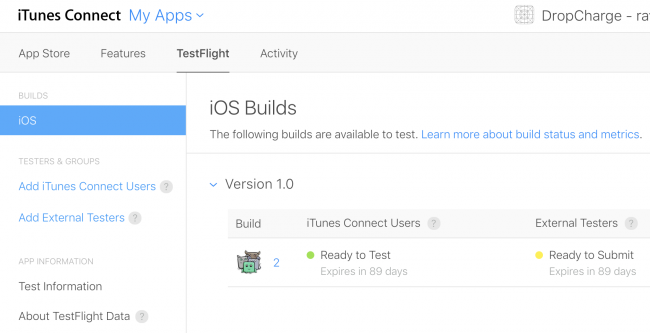 Đó là tất cả các công việc cần thiết cho Xcode. Bản build beta của bạn hiện đã có trên iTunes Connect và đó là nơi mà bạn sẽ thực hiện phần còn lại của công việc để thiết lập TestFlight.