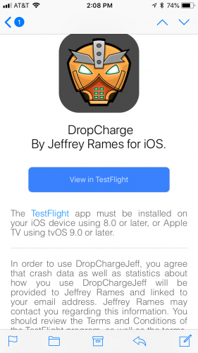Mở email này trên thiết bị thử nghiệm của bạn, sau đó nhấp vào View in TestFlight.
