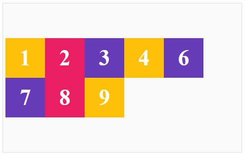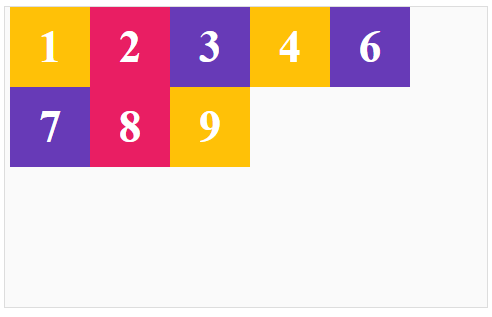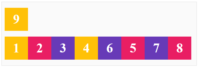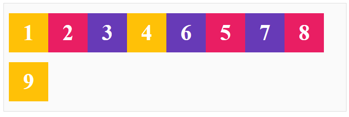 Giống với tên gọi, flex-direction: row-reverse ngược lại với row, các item sẽ được đặt từ phải qua trái.