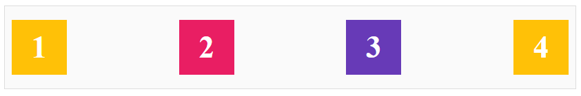 - space-around: sẽ chia khoảng cách ở đầu và cuối. Khoảng cách ở đầu và cuối sẽ bằng 1 nửa khoảng cách ở giữa 2 item với nhau