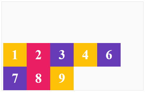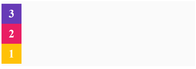 Khi đó các items sẽ được xếp chống lên nhau nhưng theo chiều ngược lại. Hay để ý sẽ thấy ở ví dụ trên (1) sẽ ở trên cùng, nhưng khi sử dụng column-reverse (1) sẽ ở dưới cùng.