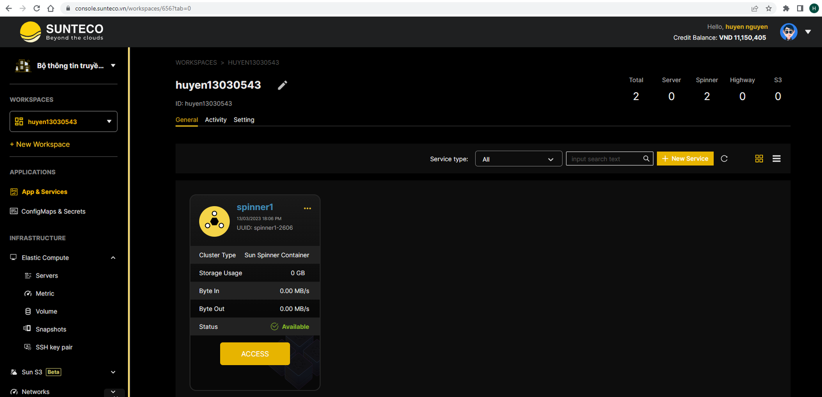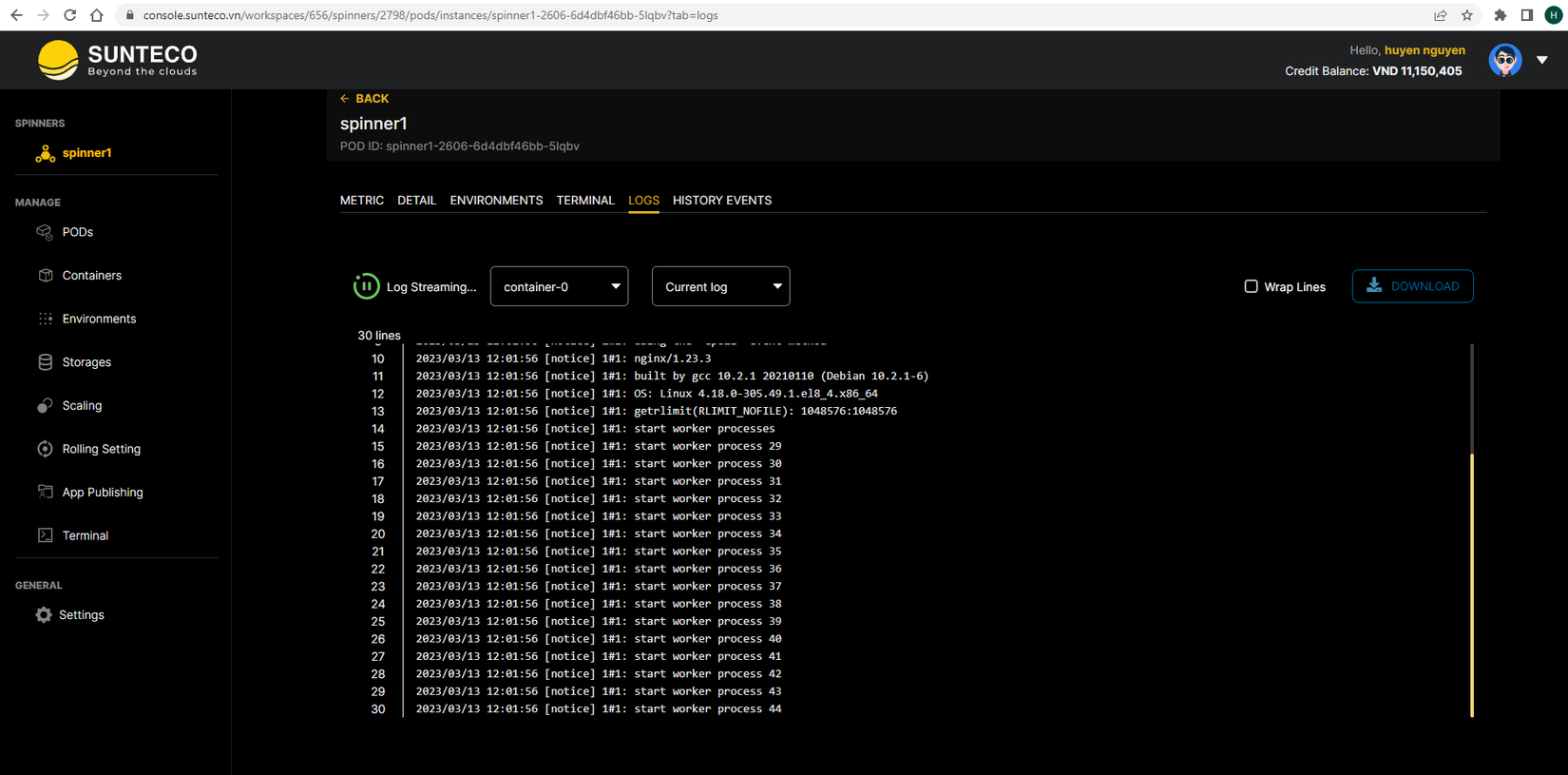 Trong bài hướng dẫn này, mình sử dụng dịch vụ Sun Spinner container của nền tảng Sunteco Cloud. Dưới đây là hướng dẫn chi tiết cách deploy image nginx trên Docker hub trên hệ thống Sunteco Cloud và những ưu điểm của Sun Spinner.