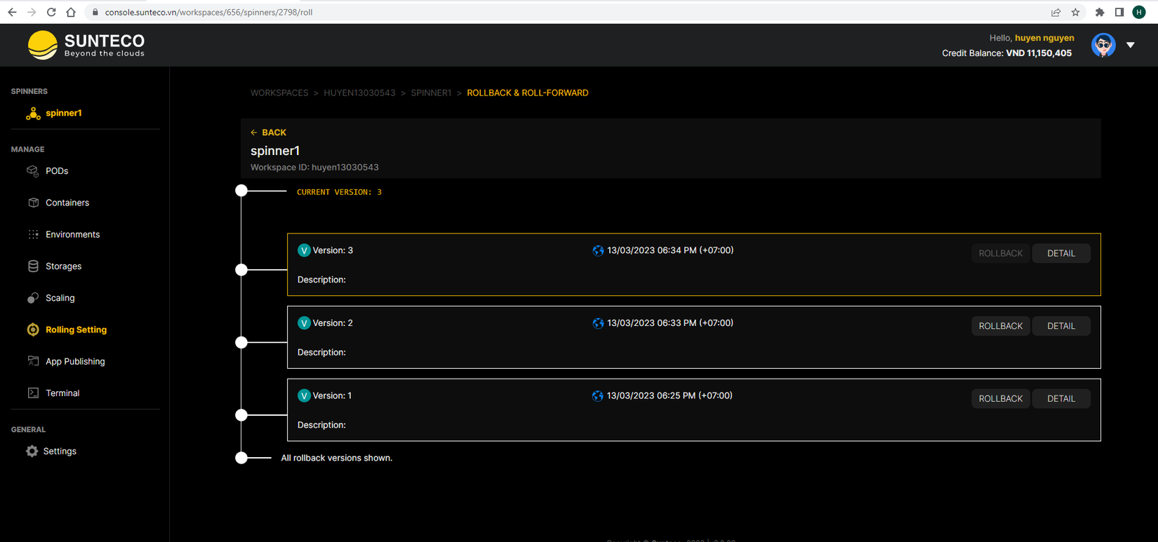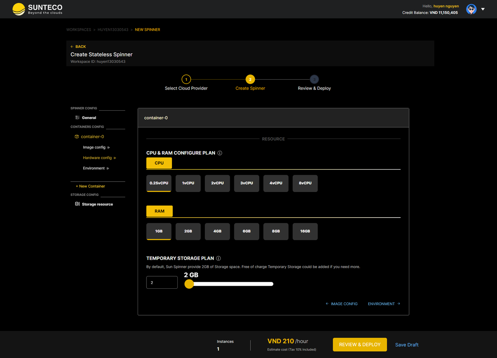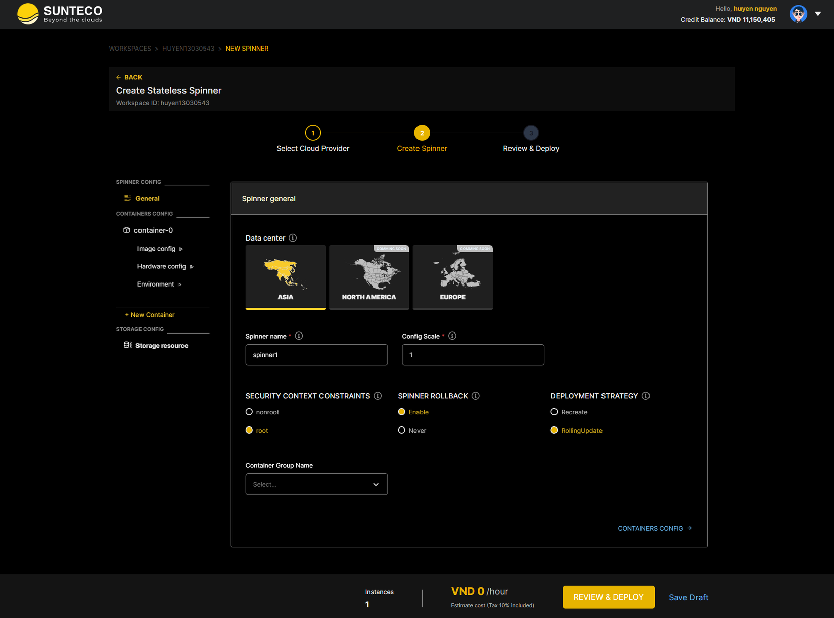 Hướng dẫn deploy spinner container trên hệ thống Sunteco Cloud