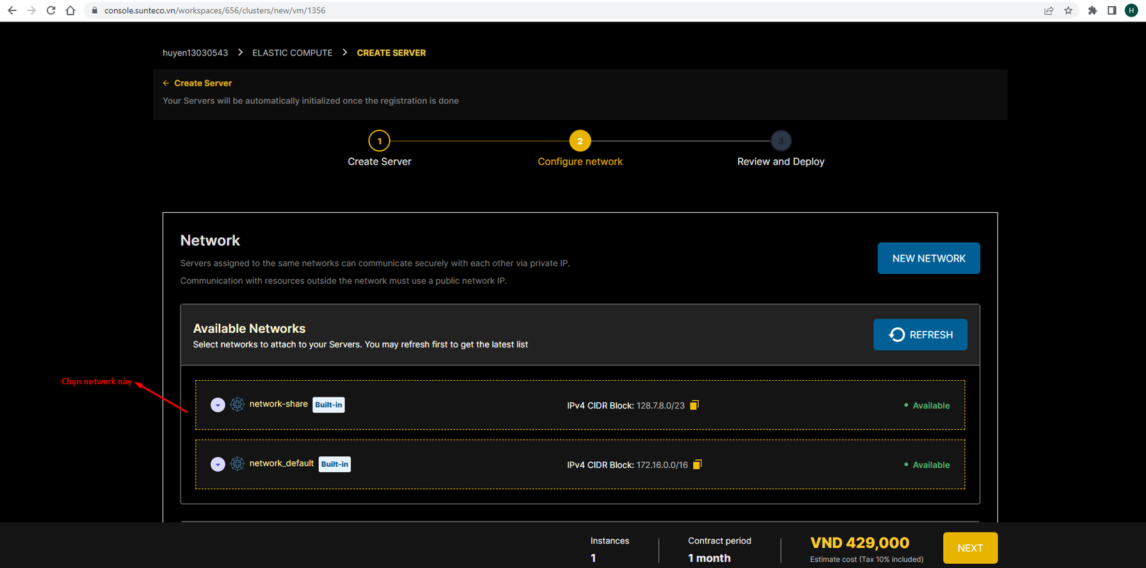 Bước 3: Chọn nhà cung cấp dịch vụ cloud (cloud provider)