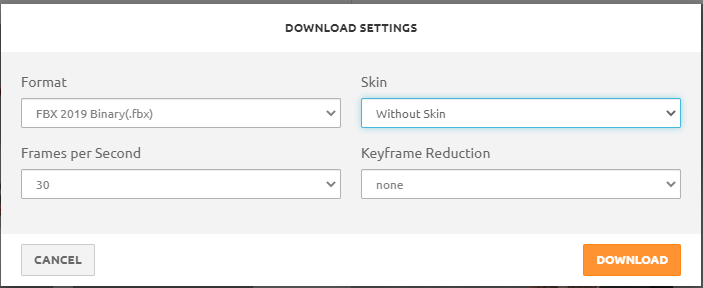 - Mixamo cho phép bạn lấy về 2 thứ, model và animation.