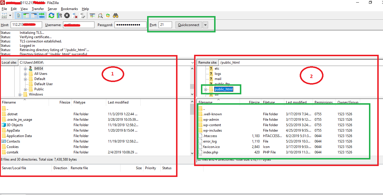 - Thư mục chứa Wordpress source code sau khi upload lên host nằm ở mục public_html