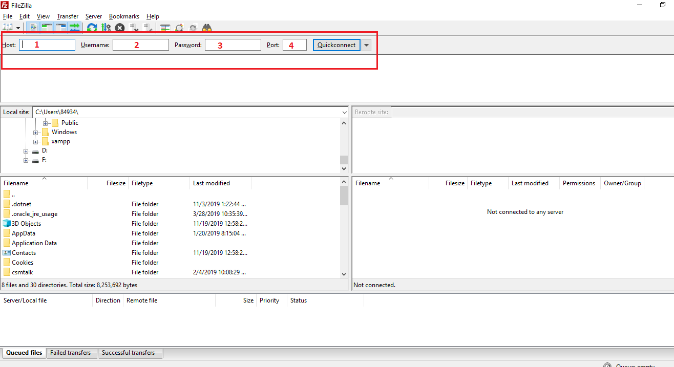 Bước 1: nhập thông tin truy cập mục 1,2,3,4 trong ảnh
