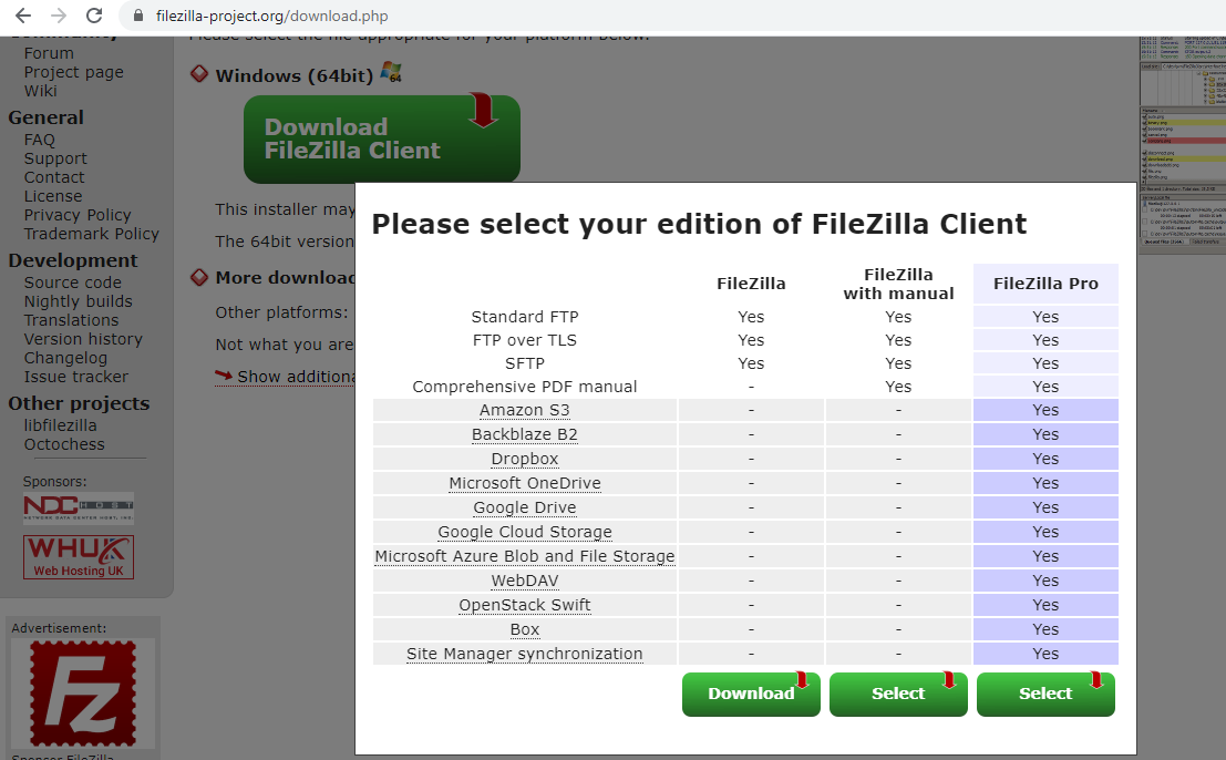- FileZilla cũng hỗ trợ kết nối tới một số nhà dịch vụ lưu trữ tập tin phổ biến hiện nay như Amazon S3, Google Drive, Box, Dropbox,...