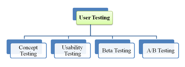 User testing là một loại Kiểm tra thủ công trên iOS. Mục đích của thử nghiệm này là tạo ra các ứng dụng tốt hơn, không chỉ là các ứng dụng không có lỗi. Hình dưới đây cho thấy bốn loại Kiểm tra người dùng