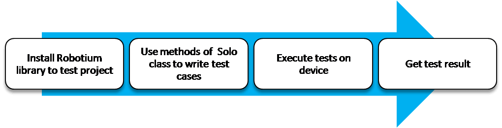 Robotium Test Case Classes Robotium sử dụng tập hợp các class (com.jayway.android.robotium.solo) để thử nghiệm. Class này hỗ trợ các trường hợp kiểm thử trải dài trên nhiều hoạt động. Solo được tích hợp với ActivityIusalmentationTestCase2.