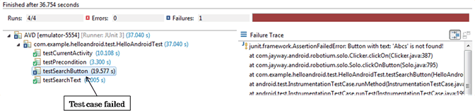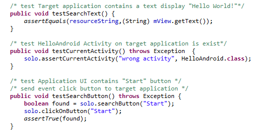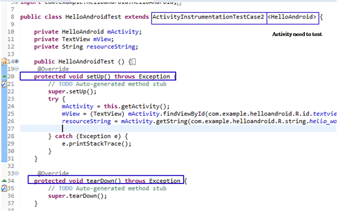 - Để kiểm tra một số hoạt động nhất định, tức là HelloAndroid, hãy tạo một test case extent ActivityInticmentationTestCase2 <HelloAndroid>