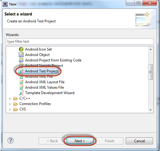 - Chọn: Android -> Android Test Project as per below figure -> Chọn Next