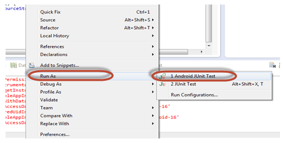 - Trong IDE của bạn, nhấn chuột phải vào Run as > Android Unit Test