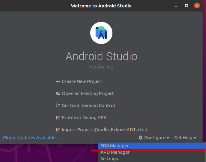 Sau khi bạn đã hoàn thành việc cài đặt adnroid-studio, bên dưới phần Configure lựa chọn SDK Manager.