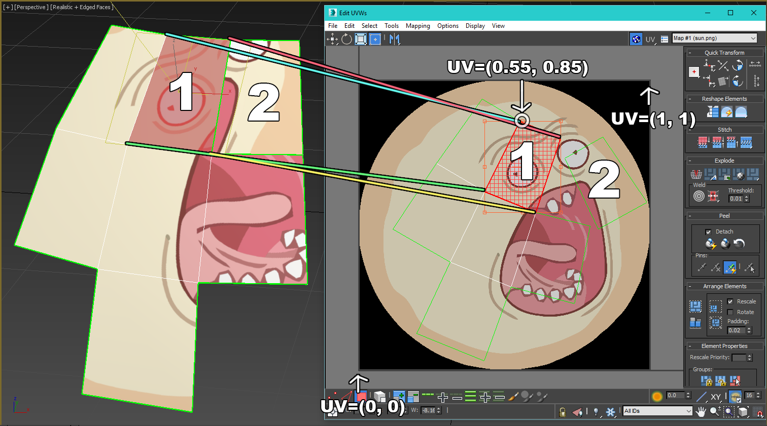 Chú ý là (0, 0) là phía dưới bên trái của texture và (1, 1) là phía trên bên phải. Nếu bạn muốn áp dụng các biến dạng cho texture của sprite, bạn cần lưu ý kích thước và tỷ lệ khung hình của texture.