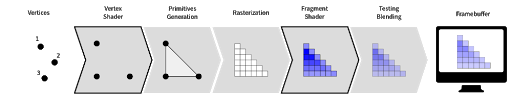 [^ 1]: "fragment" là gì? fragment được coi là một pixel trong OpenGL. Pixel cuối cùng được hiển thị trên màn hình có thể là một vài fragment được trộn với nhau. Khi thực hiện kết xuất 3D, một fragment có thể bị che lấp bởi một fragment khác được hiển thị sau đó hoặc một fragment có thể bị xóa đi vì nó nằm sau fragment hiện tại đã được hiển thị.