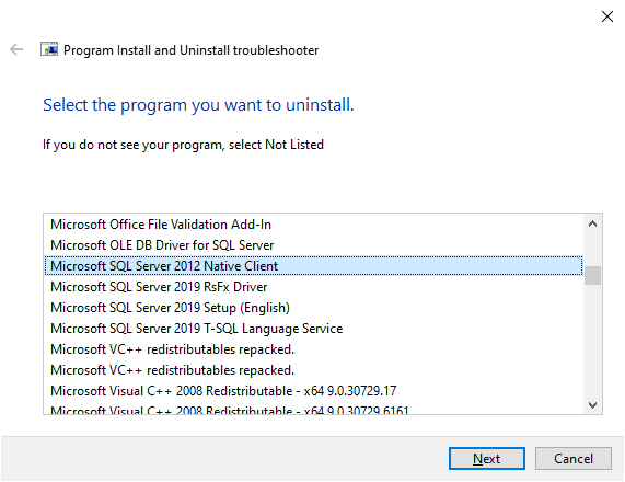 Như đã nói ở trên, lý do là do version trước đó chưa được gỡ hết. Mình tìm được và tải tool có tên Microsoft Program Install and Uninstall. Nó giống giống như kiểu Windows troubleshooter ấy, cơ mà hữu dụng hơn