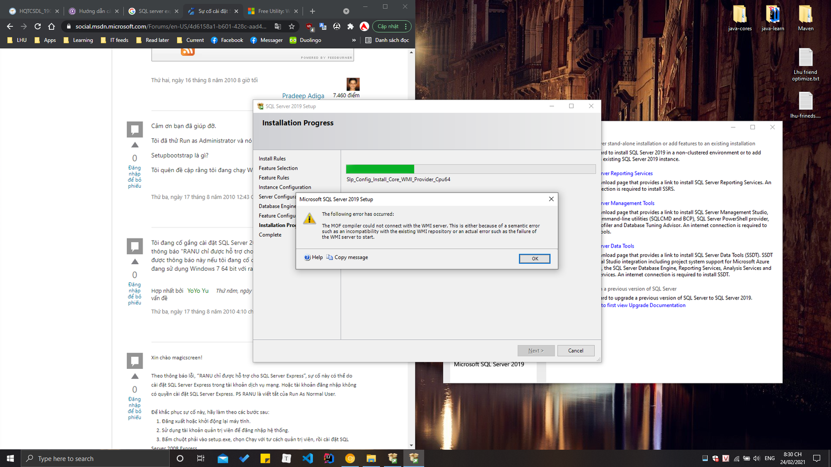 Sau khi gỡ xong hết, cần khởi động lại máy và cài lại SQL Server. Quá trình cài đặt diễn ra nhanh chóng và bình thường, hoàn toàn không còn lỗi gì nữa.