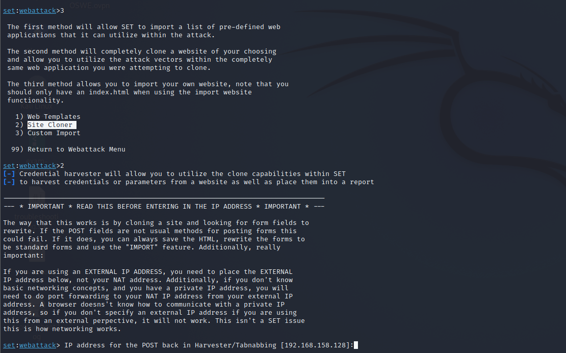 Phương thức 2) Site Cloner (Nếu Website bạn muốn phishing không có sẵn Templates)
