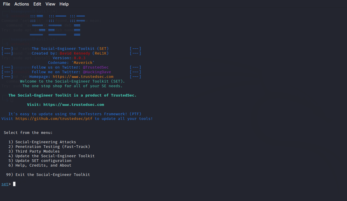 git clone https://github.com/trustedsec/social-engineer-toolkit
