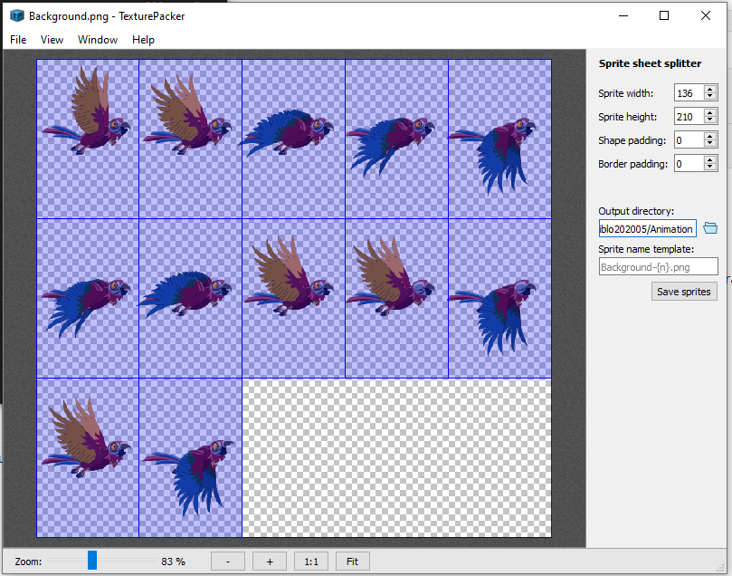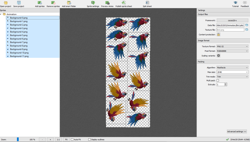 - Sở dĩ phải đưa vào để tách là vì mình không biết cách dùng ngay ảnh này làm animation, vì vậy mình sẽ tách nó ra trước, sau đó lại cho vào để sinh file plist animation :v