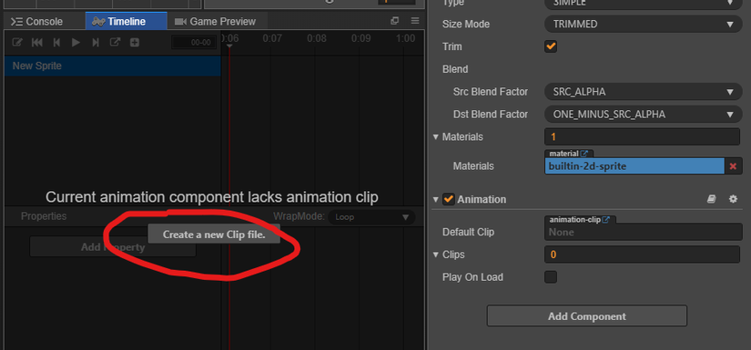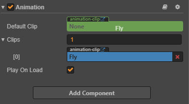 - Kéo animation vừa tạo vào property Default Clip của sprite node tạo ở bước trên. Nhớ chọn Play On Load nha!