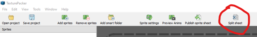 - Sau khi bật TexturePacker lên, các bạn ấy vào nút Split sheet, sau đó kéo ảnh vào: