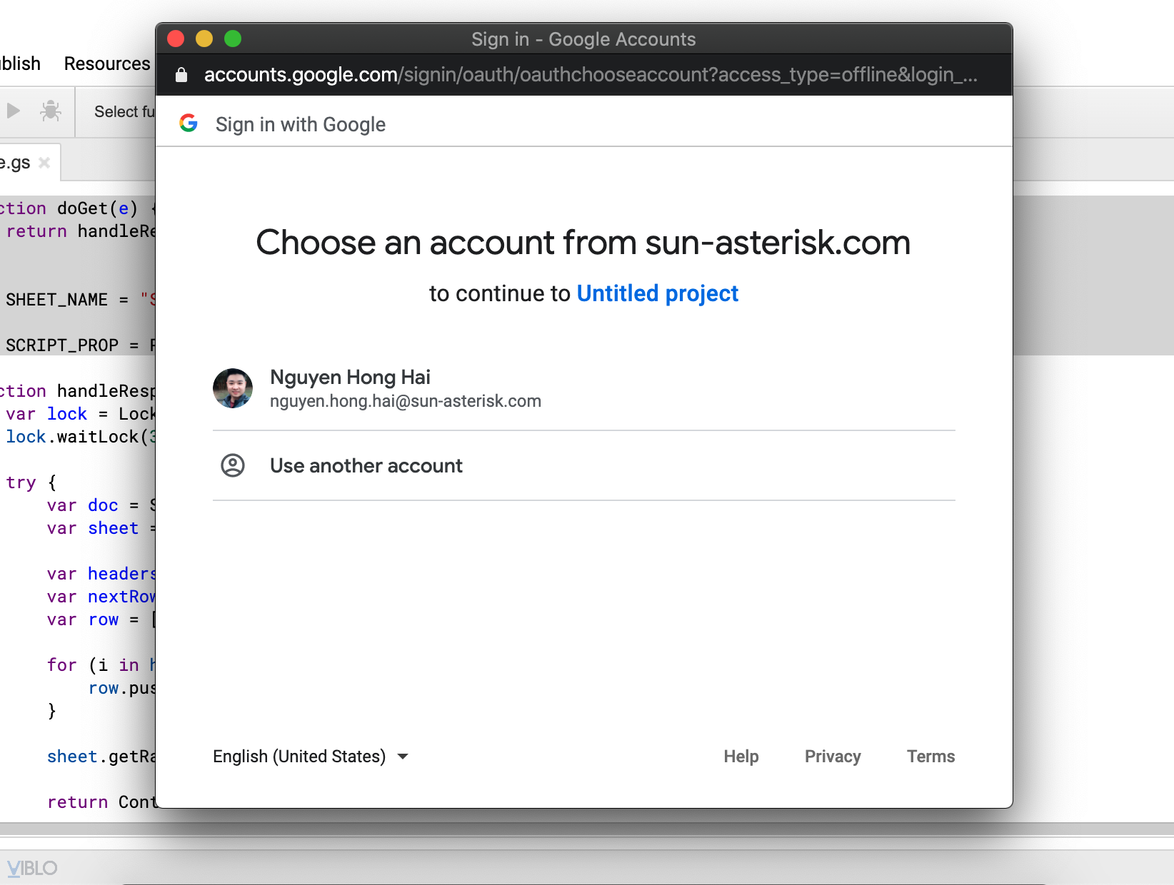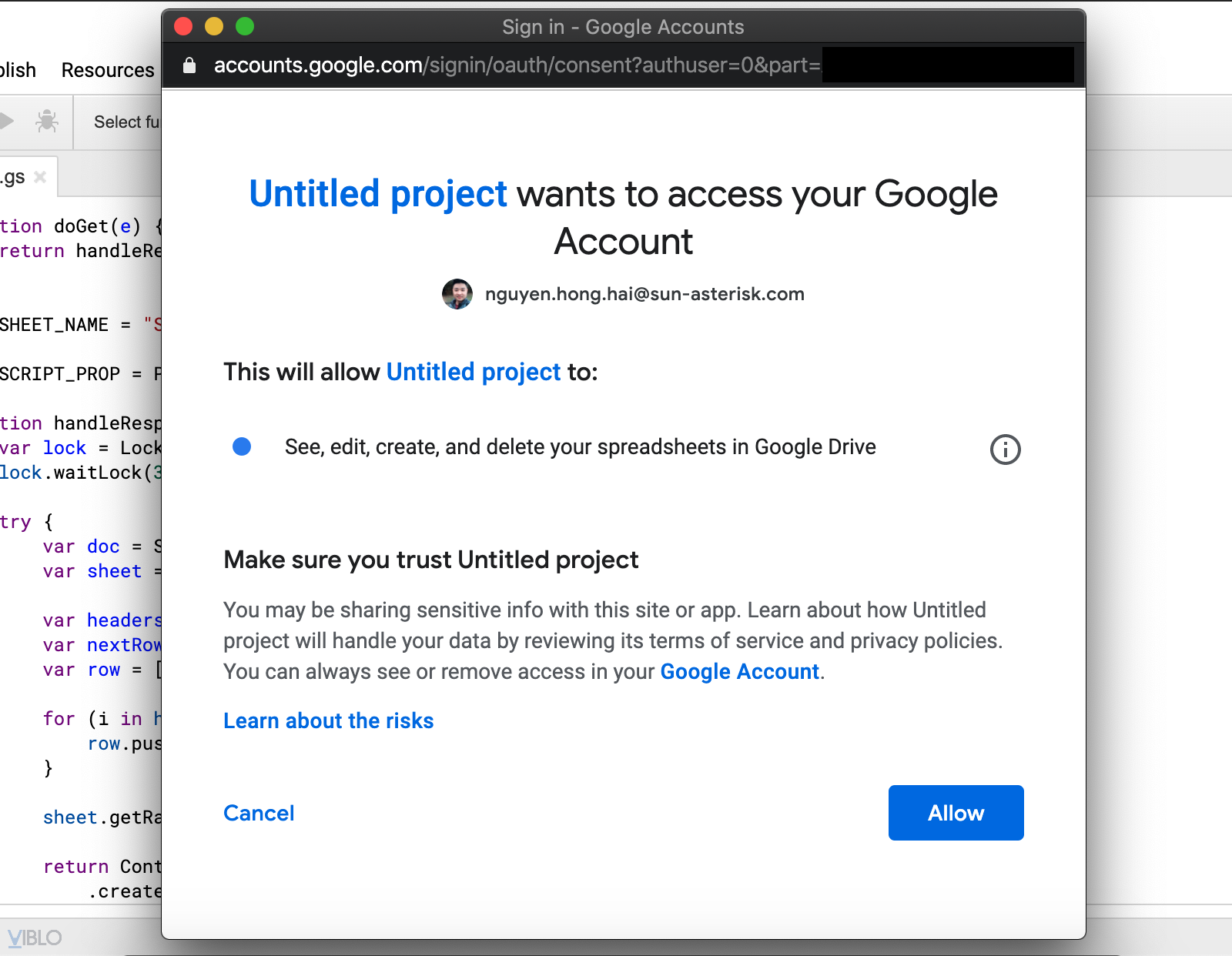 Trình duyệt sẽ mở 1 tab google script