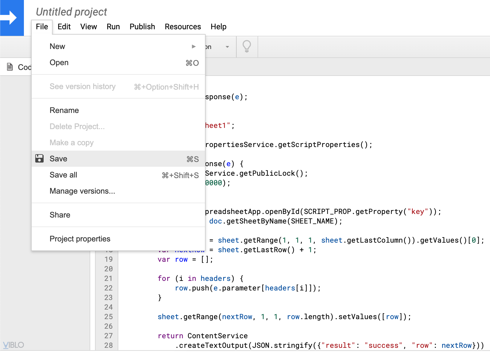 var doc = SpreadsheetApp.getActiveSpreadsheet();