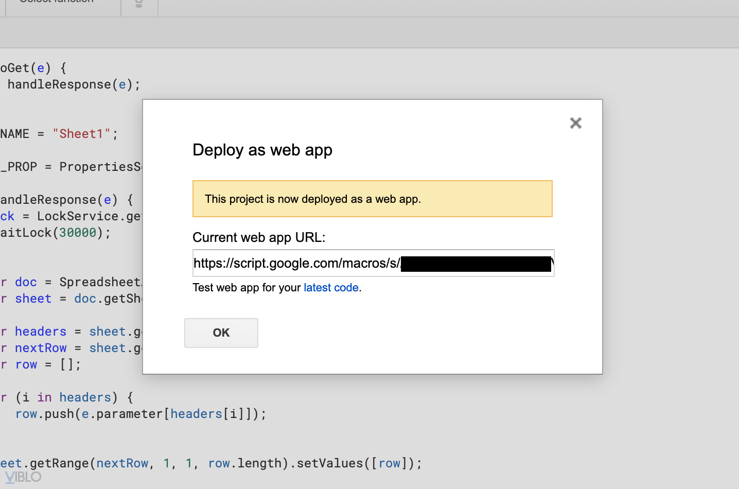 var url = 'https://script.google.com/macros/s/abcdefghijklmnopqrstuvwxyz1234567890/exec';