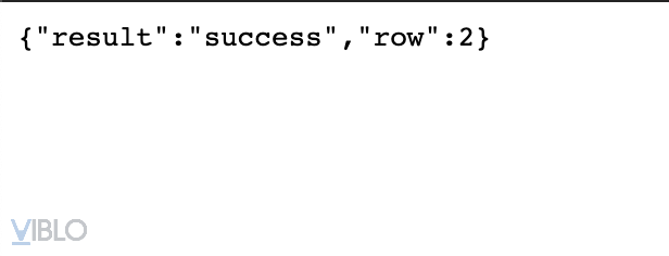 Ở màn hình trình duyệt hiển thị như dưới là đã thêm dữ liệu thành công, row chính là số dòng đã thêm vào google sheet