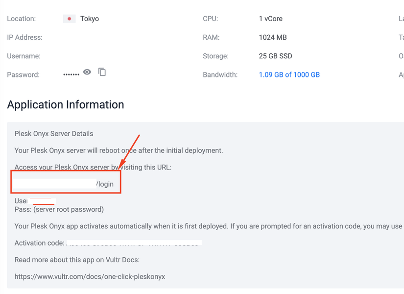 Sau khi tạo xong server, quay lại phần products, bạn sẽ thấy danh sách các server và các trạng thái của nó, click vào server vừa tạo để xem chi tiết thông tin. Kéo xuống phần Application info sẽ có thông tin link và tài khoản login.
