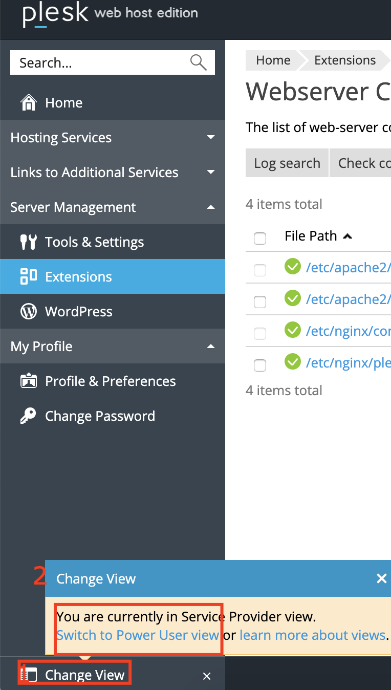 Sau khi login vào plesk, hãy chọn view là Power View User để có trải nghiệm tốt hơn nhé