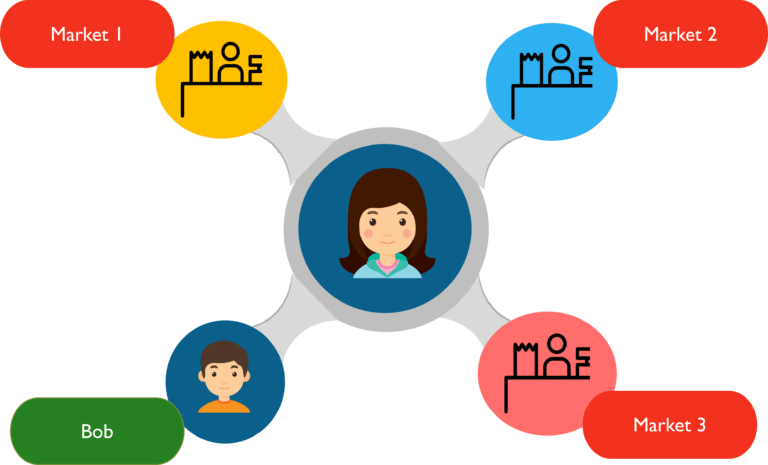 Chúng ta lấy ví dụ với Bob, sống ở Ấn Độ, anh ta muốn mua hàng từ Alice ở Thụy Sĩ. Vì họ là bạn, Alice bán sôcôla cho Bob với mức giá "vừa bán, vừa cho". Điều quan trọng ở đây là Alice còn bán sản phẩm của mình cho nhiều người khác nhau, ở các thị trường khác nhau và giá bán cho họ vẫn sẽ phải là mức giá niêm yết. Để hoàn tất giao dịch giữa Alice và Bob, nhiều người ở trên mạng sẽ tham gia để xác thực và chứng nhận các giao dịch.