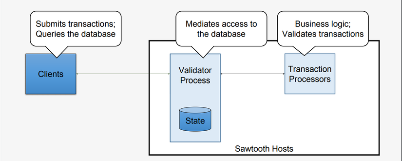 Mỗi ứng dụng có thể là một logic nghiệp vụ riêng hoặc một máy ảo hợp đồng thông minh (smart contract virtual machine). Trên thực tế, cả hai loại ứng dụng trên có thể tổn tại trong cùng một blockchain. Sawtooth cho phép những quyết định thiết kế này được đưa ra trong lớp xử lý giao dịch, cho phép nhiều loại ứng dụng tồn tại trên cùng một thực thể của mạng blockchain.