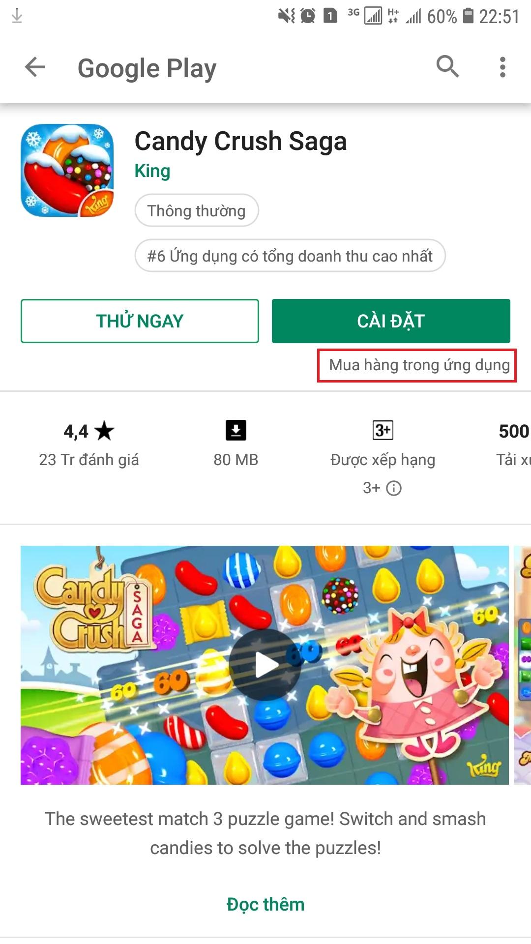 Khi chúng ta phát triển ứng dụng có chức năng cho phép người dùng mua hàng trong ứng dụng như ứng dụng Candy Crush Saga dưới đây thì lúc này chúng ta cần dùng đến In-App Billing.