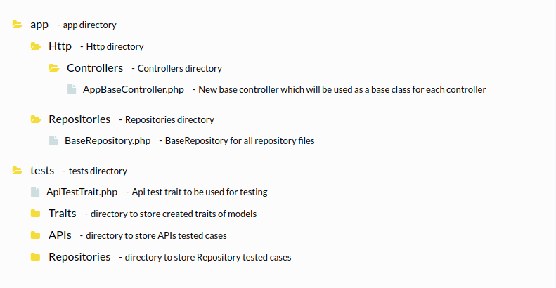migration:rollbackcủa laravel trước. Thật không hiểu lắm về dụng ý của nhà phát triển Infyom =)). Tuy nhiên bù lại khi nhìn trong đống file mà Infyom tạo ra bạn sẽ rất vui, vì đây là công việc mà developer nào cũng ghét đó là viết Test. Infyom đã viết test luôn cho bạn cả controller lẫn repository rồi. (Phê)