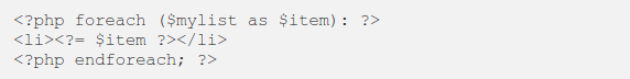 View templates "sử dụng cú pháp PHP thay thế cho các cấu trúc điều khiển và output" vì thế ban đầu trông nó hơi lạ. Ví dụ cho vòng lặp "foreach":