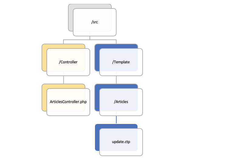 Các file được đặt trong folder "src/Template" và tên được đặt theo Controller sử dụng file đó, và theo hành động tương ứng với nó.