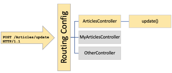 Routing quy định Controller nào sẽ xử lý request. Controller logic dựa trên các actions. Actions được định nghĩa như các public method trong Controller.