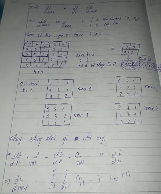 Ta có thể nhận ra rằng chúng không có gì thay đổi so với phần 3 của series 1 trước đó . Vâng chúng chính là một phần nhỏ ANN trong đó , tiếp theo sẽ là một thách thức thực sự với cnn khi backward và nhận ra điều kỳ diệu của chúng. Nhìn lên sơ đồ tính toán ta biết ta sẽ phải tính đạo hàm với max pooling