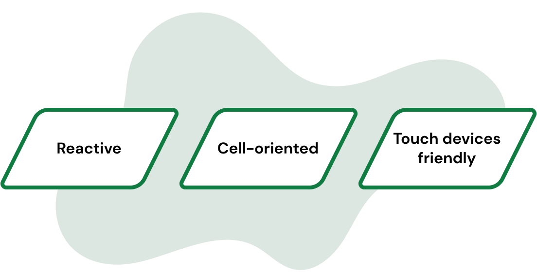 Vấn đề về công thức, thanh công cụ và tọa độ? ReactGrid là một component trong đó chúng tôi chỉ thực hiện các action được biết đến từ các bảng tính điển hình. Mục đích của chúng tôi không phải là tạo ra Excel tiếp theo, mà là tạo bất cứ thứ gì bạn thích xung quanh nó bằng cách sử dụng API.