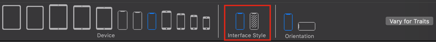 Cách này khá dễ dàng. Apple đã cung cấp một tập hợp các định nghĩ cho dynamic color như System Black Color, System Orange Color... Chúng đều có 2 phiên bản màu, một cho chế độ tối, một cho chế độ sáng. Sau khi bạn thiết lập màu cho một view trên storyboard, bạn không phải chạy ứng dụng để kiểm tra nó trông như thế nào, có một tuỳ chọn trong XCode để chuyển Interface Builder sang chế độ tối.