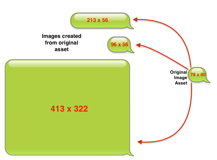 Ý tưởng của cách tiếp cận này rất đơn giản thôi, bạn có một cái ảnh bubble message ban đầu (đủ nhỏ) và sẽ scale nó theo size mà mình tính toán của các message.