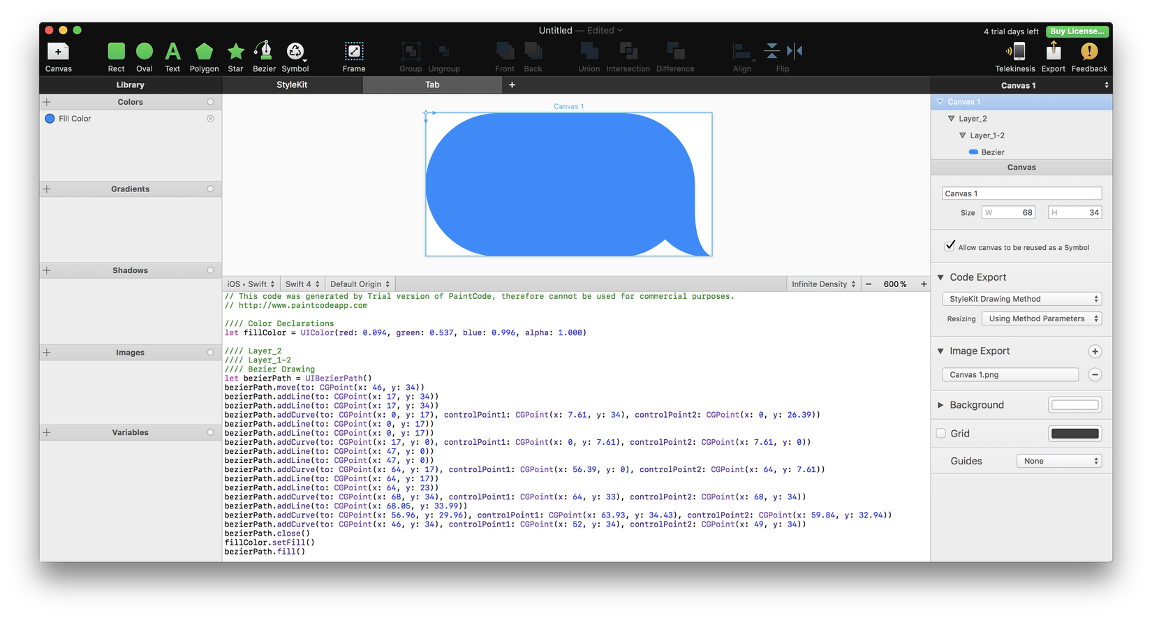 Hình ảnh ở trên là đoạn code được tạo ra từ Paint Code, có thể thấy rằng để tạo ra một bubble message chat từ UIBezierPath là không hề dễ dàng, chưa kể đến đây mới chỉ là một bubble với size cố định, để co giãn được theo content ở trong, chúng ta phải sửa những tham số hard code thành những biến và tính toán nó cho phù hợp với content ở bên trong.