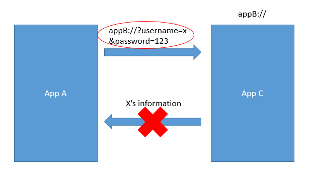 - không nên gửi các thông tin nhạy cảm qua cơ chế này, có thể có phương thức khác để sử dụng tính năng X trong trường hợp không thể sử dụng custom url scheme.