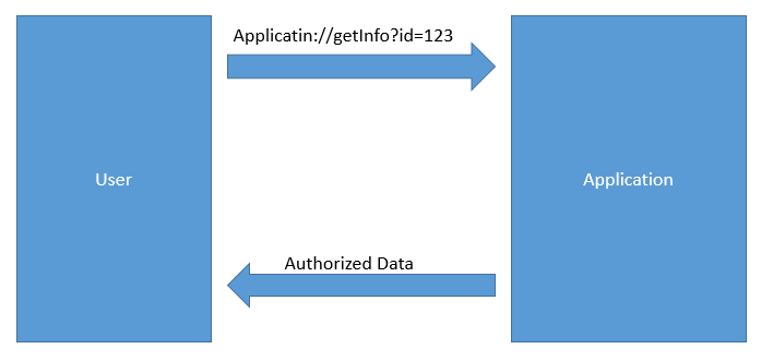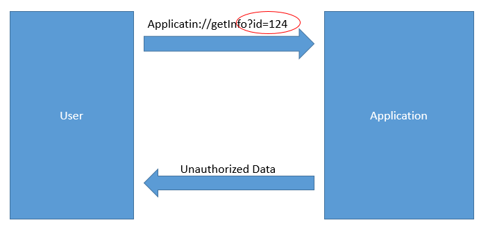 Đầu tiên, người dùng với id=123 có quyền truy cập tới thông tin của mình thông qua custom url Application://getInfo?id=