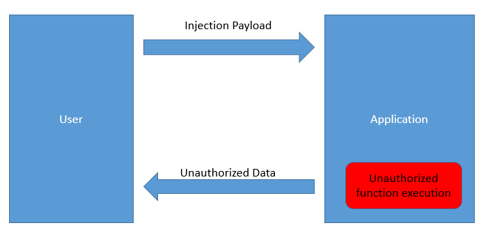 Là một loại lỗ hổng thường xuyên góp mặt trong top 10 các lỗ hổng bị khai thác nhiều nhất (mình sử dụng thống kê của OWASP), tấn công injection có thể thực hiện trên rất nhiều các attack vectors. Và custom url scheme cũng không là ngoại lệ. Lỗ hổng injection xảy ra khi mà các nhà phát triển không xử lý tốt các dữ liệu đầu vào. Mô hình chung của tấn công injection có thể hình dung đơn giản như sau.