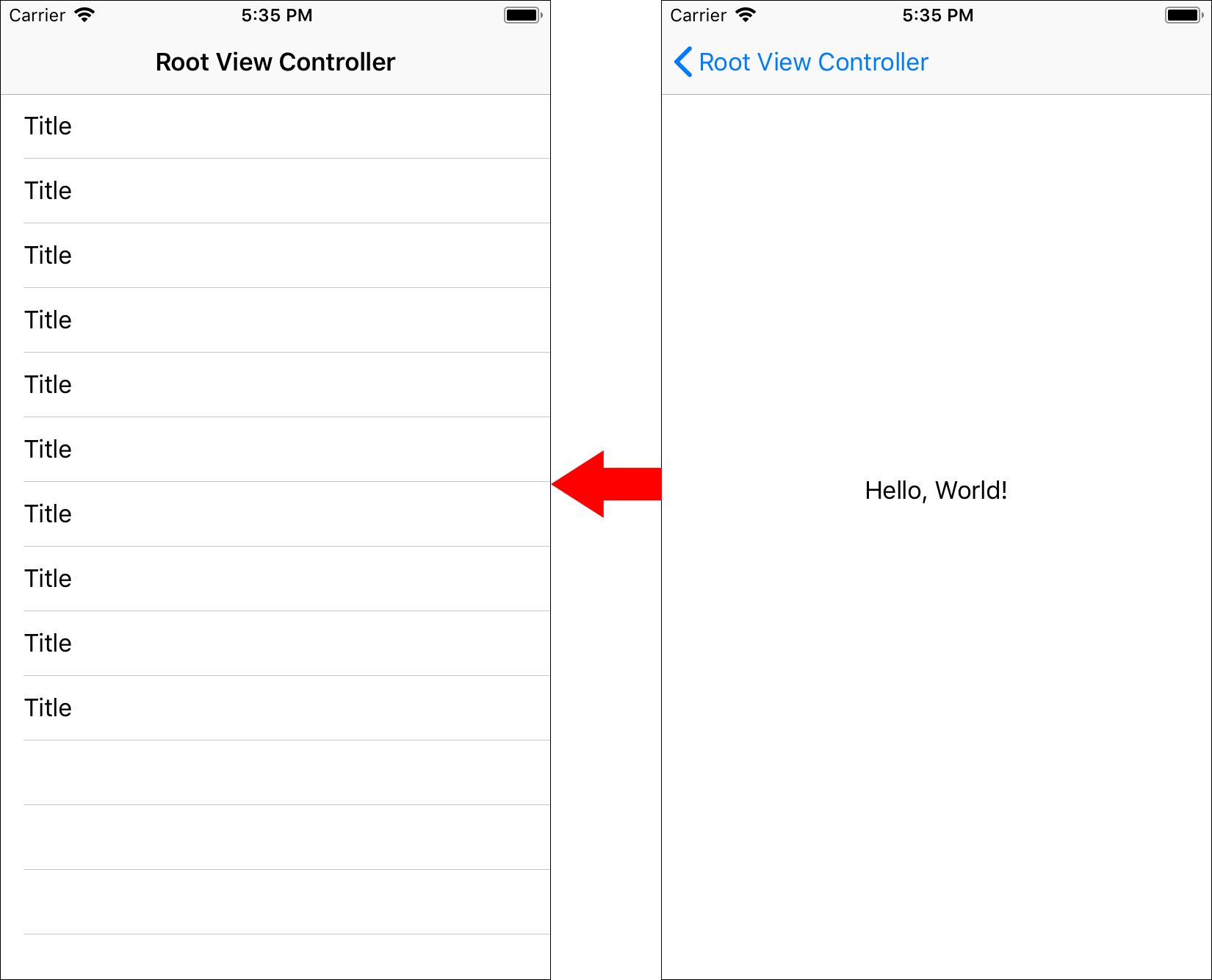 Như vậy chúng ta thấy rằng ở trên iPhone (không phải iPhone Plus) SplitViewController sẽ hoạt động giống như là ứng dụng Master-Detail truyền thống với một NavigationController cho phép đẩy và bật về qua lại. Chức năng này được tích hợp sẵn bên trong nó. Tuyệt phải không nào