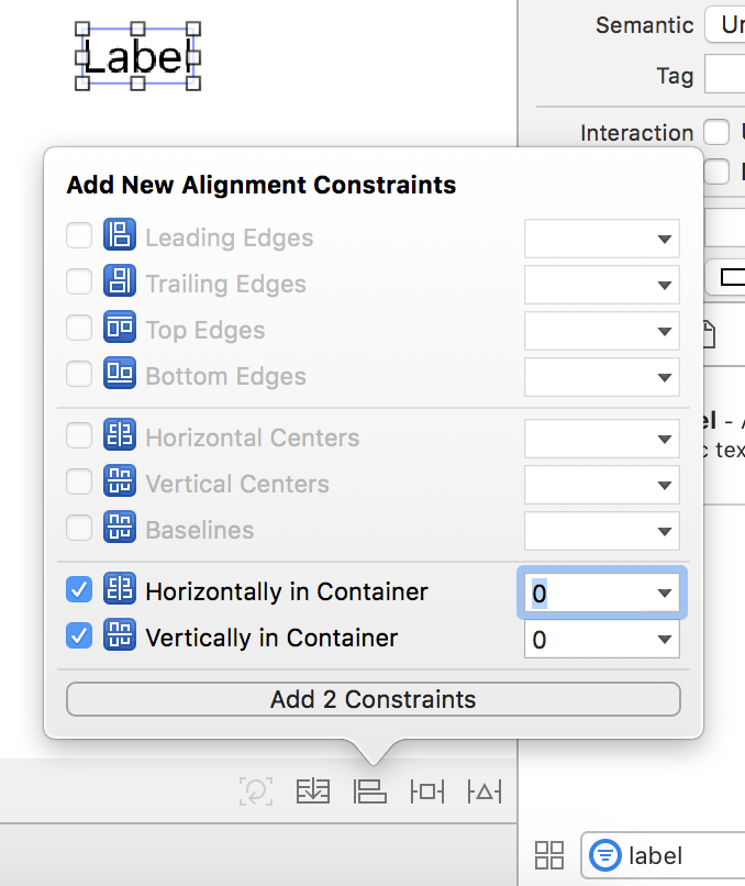 Sau đó kéo một Label vào giữa màn DetailViewController . Autolayout nó ở chính giữa ngang và dọc.
